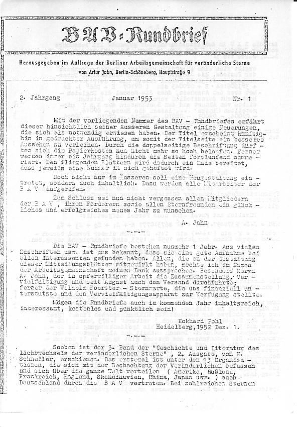 BAV Rundbrief 1/1953 Seite 1