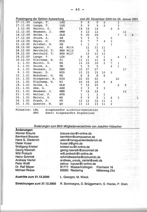 BAV Rundbrief 1/2001 Seite 44